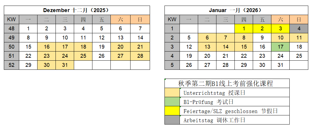 12月5日前成功报名缴费本期课程的学员,可优享苏教歌德2026年1月歌德B1等级考试考位。成功预留考位后,该课程不可退费!