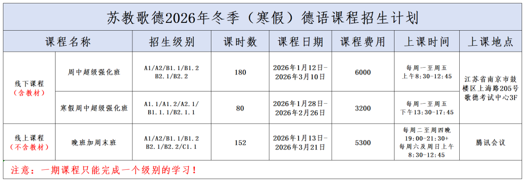 苏教歌德2026年冬季(寒假)德语课程开始招生啦!