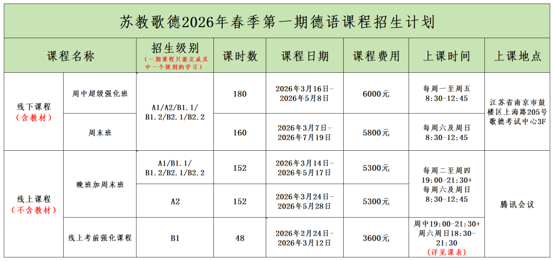 苏教歌德2026年春季第一期德语课程开始招生啦!