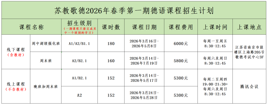 八个班已确定开班 !—— 欢迎继续报名苏教歌德2026年春季第一期德语课程~