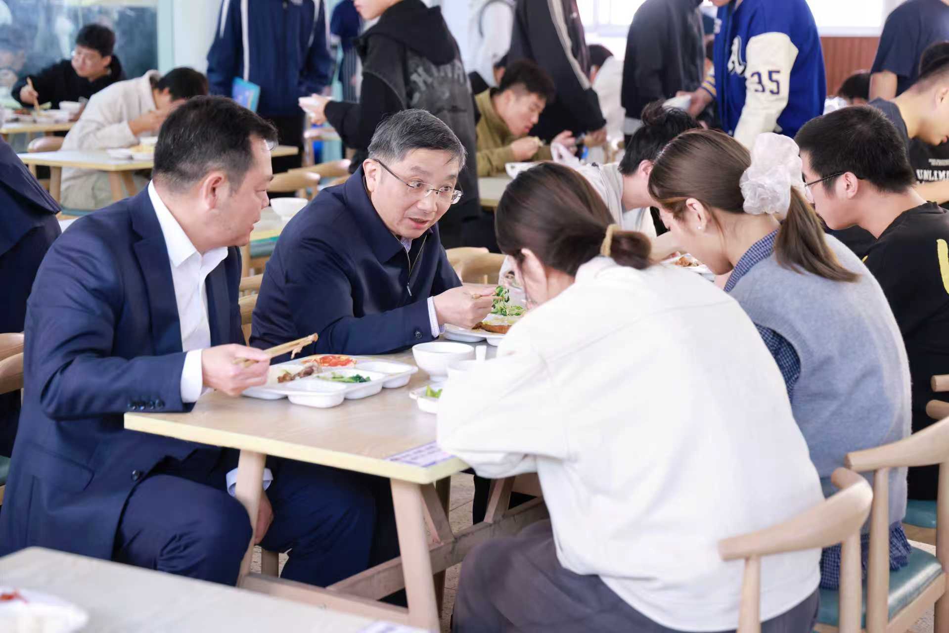 江涌以随机抽取、推门听课的方式,与同学们一起听取马克思主义学院教师讲授的一堂思政课,亲身感受民办高校思政课建设质效,并列席旁听学校党委理论学习中心组学习会,与学校党委班子成员共同学习《习近平谈治国理政》第五卷的重要文献《一体推进教育科技人才事业发展》,精准把握、全面落实以教育之强夯实国家富强之基的核心要义。调研期间,江涌还走进大国工匠工作室,详细了解正德职业技术学院弘扬传承工匠精神、深化校企协同育人,培养高素质技术技能人才工作的进展成效;深入教学楼、宿舍、餐厅等重点场所,实地查看安全设施是否完善、安全制度是否落实、安全措施是否到位,现场检查食品安全工作,并与师生共同用餐,详细了解卫生是否合格、菜品是否丰富、价格是否合理。