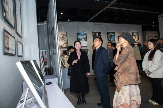 11月21日,由江苏省教育厅主办,南京信息工程大学、南京林业大学承办的“艺启AI·智绘未来”——第一届江苏省大学生人工智能艺术创作大赛优秀作品展在南京信息工程大学美术馆开幕。江苏省教育厅二级巡视员李金泉出席开幕式并讲话。来自全省100余所高校的相关部门负责人以及入展作品师生代表等300余人参加了开幕式。