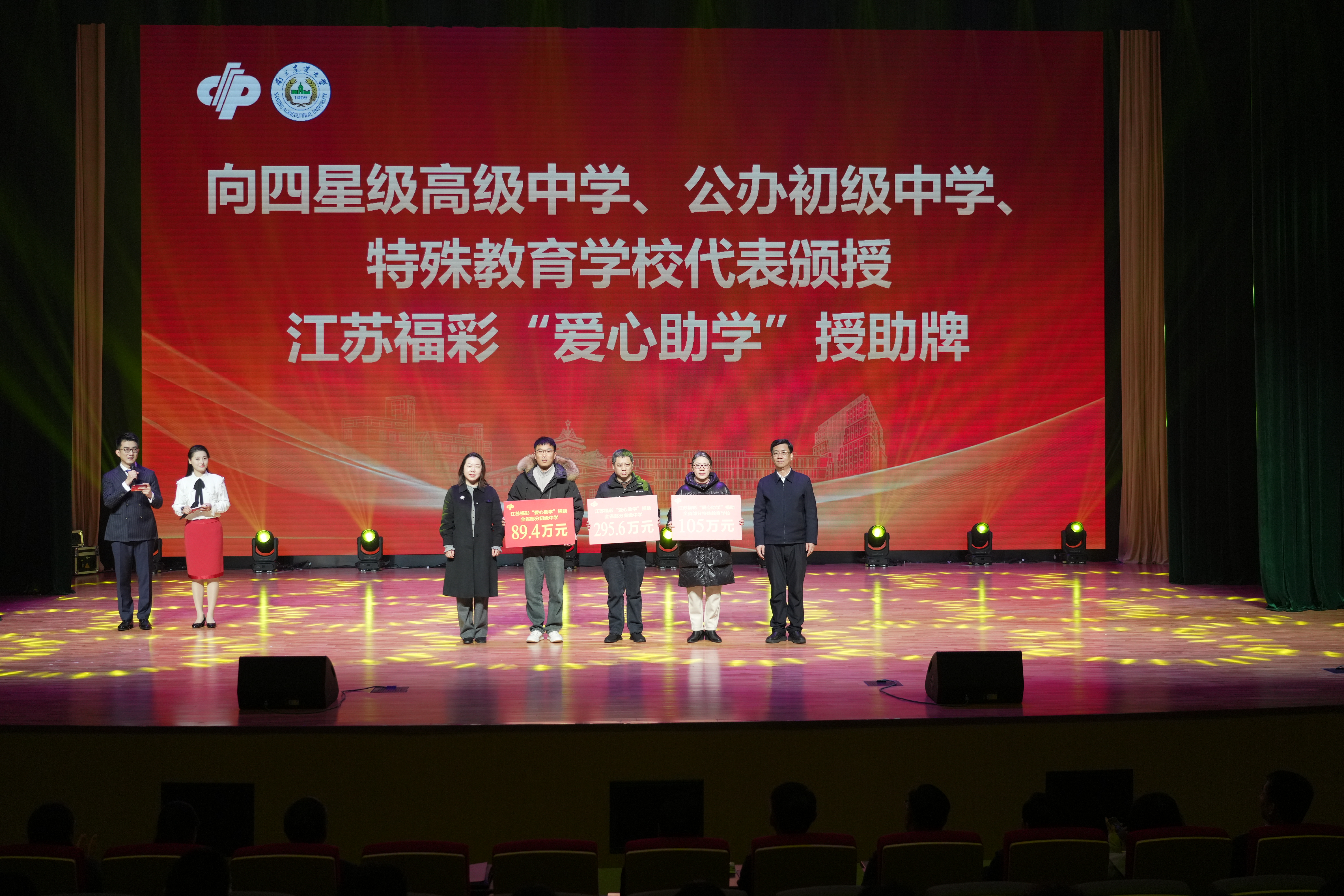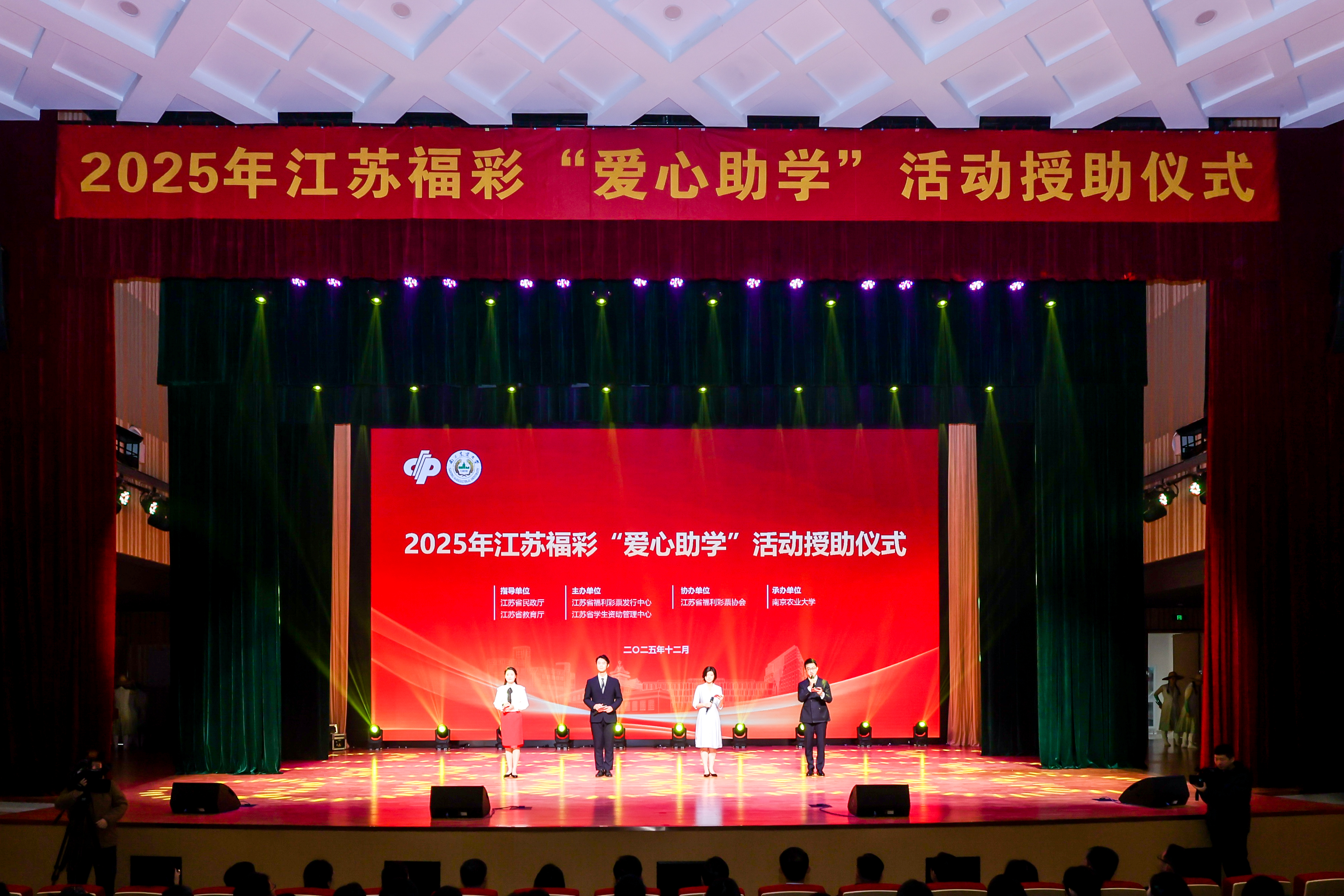 12月17日,省福利彩票发行中心和省学生资助管理中心联合举办的2025年江苏福彩“爱心助学”活动授助仪式在南京农业大学举行。省教育厅副厅长吴昊出席仪式并致辞。省民政厅党组书记、厅长韩骅,省民政厅党组成员、副厅长林莉,南京农业大学党委书记王春春等出席活动。南京农业大学全体受助学生以及其他在宁受助高校、四星级高中、公办初中和特殊教育学校师生代表200余人参加了授助仪式。
