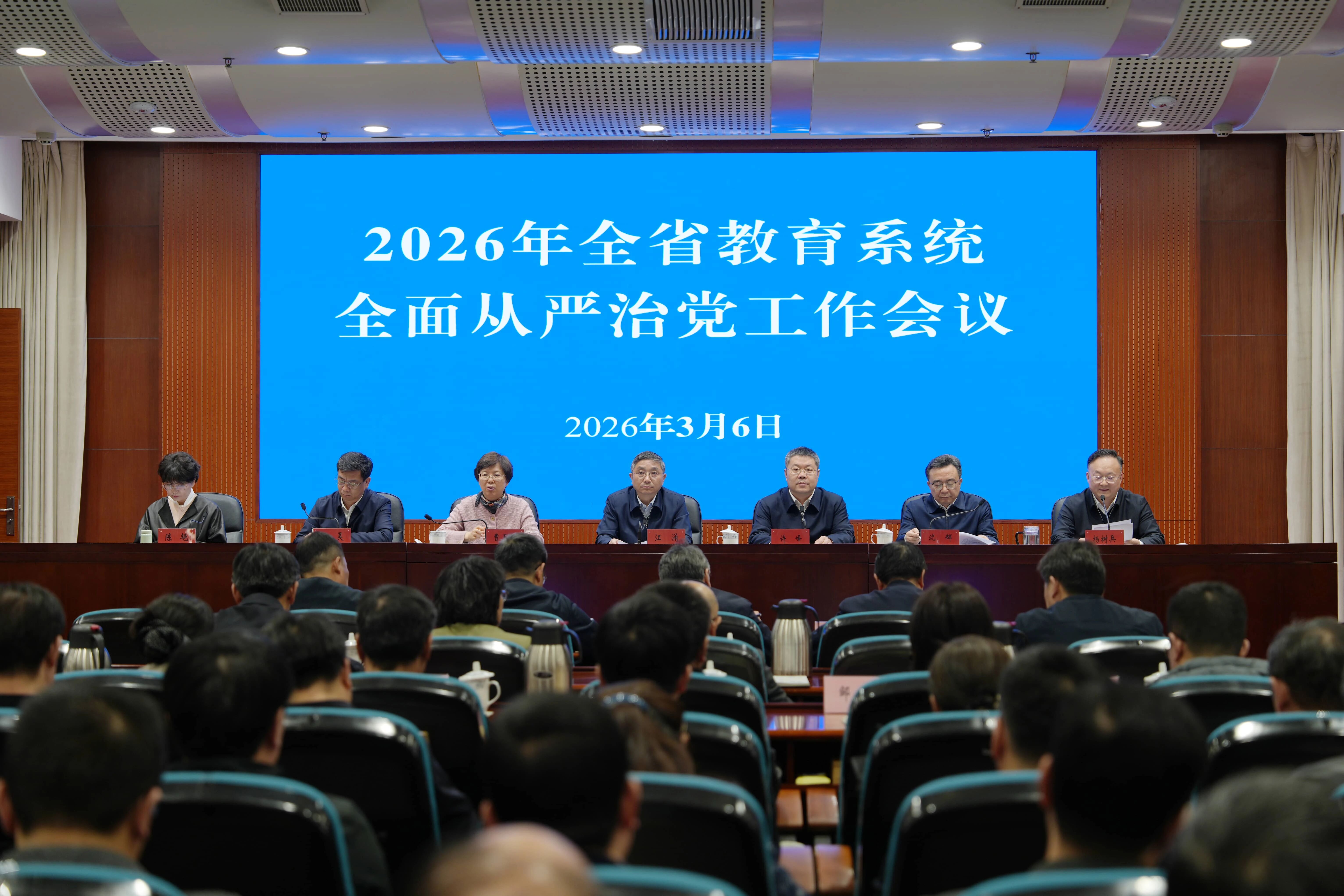 3月6日,省委教育工委、省教育厅召开2026年全省教育系统全面从严治党工作会议。省委教育工委书记、省教育厅党组书记、厅长江涌,省纪委监委一级巡视员沈辉出席会议并讲话,省教育厅副厅长、机关党委书记杨树兵主持会议并通报典型案例。