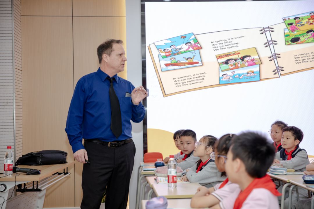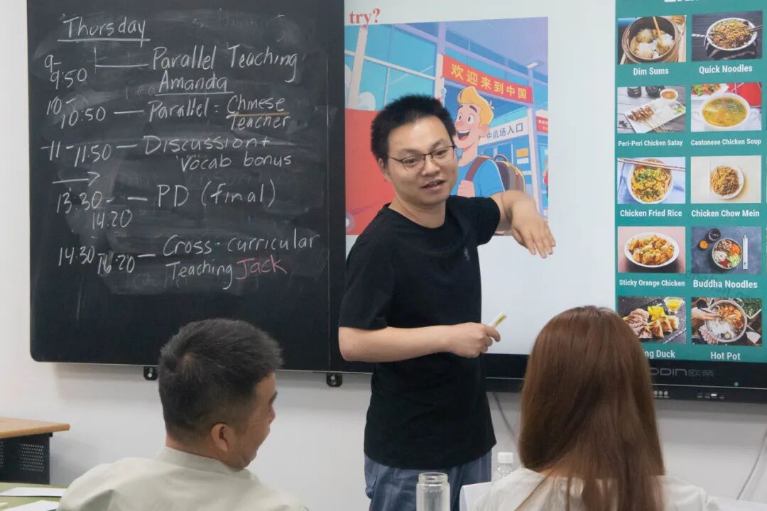 海安角斜小学教师曾于凡分享道:“我们的课堂可以更有趣味性,在课堂中多设计一些教学活动,让学生积极地参与到课堂中。”扬州大学附属中学教师孙兴旺认为:“同课异构不仅拓宽了我们在跨文化交流领域的视野,更完美展现了不同教学思路如何相互补充、相得益彰。”参训教师和外教一同前往鼓楼区多所中小学进行“同课异构”,外籍教师Gil评价道:“访问这些学校是非常不错的体验。课堂观摩、师生互动和校园氛围让我直观地看到中国基础教育体系的运行方式,也为我今后的教学设计带来了新的启发。”外籍教师Amanda感叹道:“进入学校,我切实感受到两国教育在方法与内容上的差异,我认识到许多不同的教学方法和内容,也在差异中发现了共同追求,这让我对教育有了更加立体且全面的理解。”