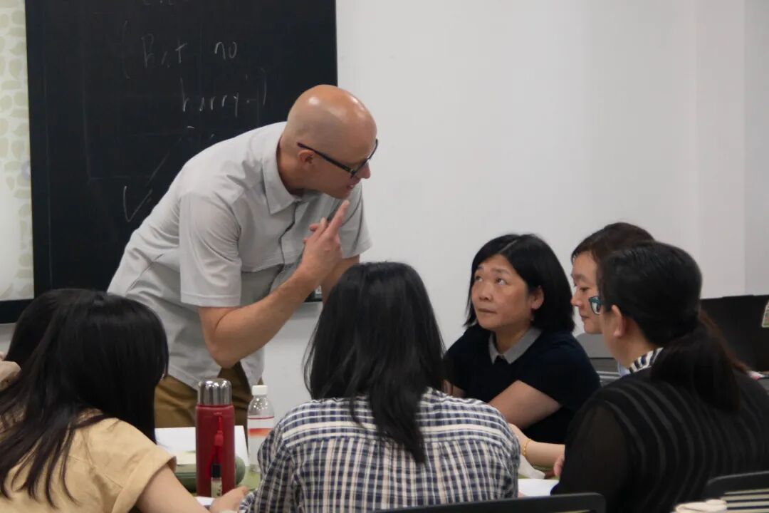 引智培训课程由经验丰富的外籍教师执教,针对小学、初中、高中不同学段特点,围绕课堂管理、环节设计、教学策略等核心议题,开展丰富多样的专题教学。外教不仅展示了“以学生为中心”的教学模式,还通过案例分析和头脑风暴等形式,与参训教师深度交流、互相学习,全方位提升参训教师的专业素养与教学能力。