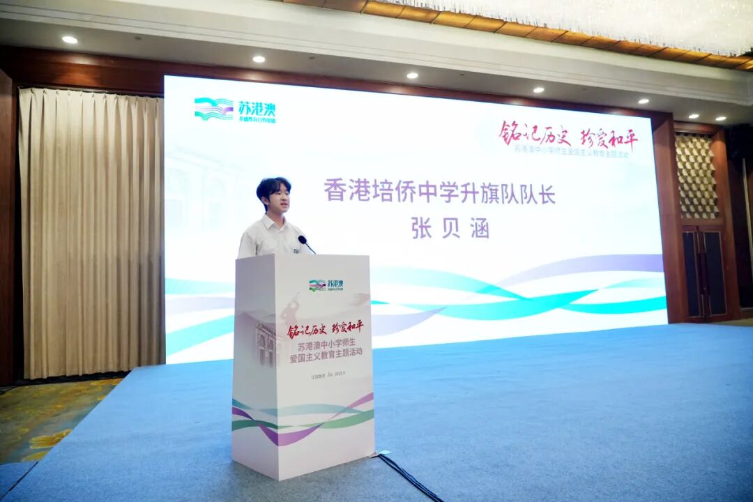 香港培侨中学校长伍焕杰作为港澳师生代表,在发言中分享了9月3日他在天安门广场亲眼见证纪念中国人民抗日战争暨世界反法西斯战争胜利80周年大会的难忘经历,习近平主席发表的重要讲话,让他深刻感受到这段历史对中华民族的深远影响,呼吁大家要铭记历史、缅怀先烈、珍爱和平、开创未来。当代青少年应当感恩今天的和平生活,担当责任,为中华民族伟大复兴贡献自己的力量。