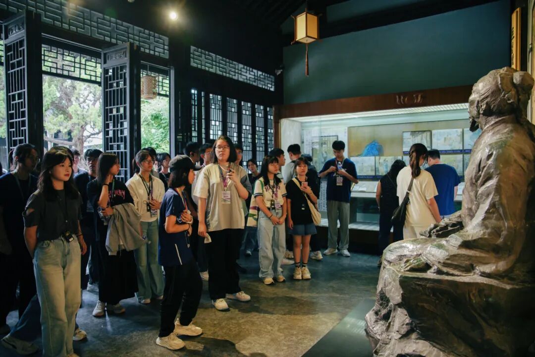 活动期间,港澳师生们沉浸式体验了淮安特色的传统文化。漫步在有着约2500年历史的河下古镇,耳畔萦绕淮剧清音,师生们欣赏街道两旁保存完好的明清建筑群,联想古时淮安作为南北漕运咽喉要道舟楫往来、商贾云集的繁荣景象,体验运河文化的厚重与独特魅力。走进周恩来故居和纪念馆西花厅,港澳师生们怀着崇敬的心情瞻仰了周恩来总理童年生活居所和生前办公场所,真切感受周总理日理万机、呕心沥血的日常,以及他严于律己、心系人民的崇高品格。许多师生在展品前久久驻足、神情专注,被周总理“为中华之崛起而读书”的远大志向和为国家鞠躬尽瘁的伟大精神深深震撼。吴承恩故居内,同学们通过讲解员的详细介绍,深入了解《西游记》的创作背景和文化价值,以及明代著名文学家吴承恩的生平事迹,认识到《西游记》不仅是一部中国神话小说,更蕴含着深刻的人生哲理和文化内涵。通过系列文化参访活动,港澳师生深入了解淮安这片土地上发生的红色故事和文化遗产,进一步增加了对历史的敬畏、对文化的认同、对国家的热爱。