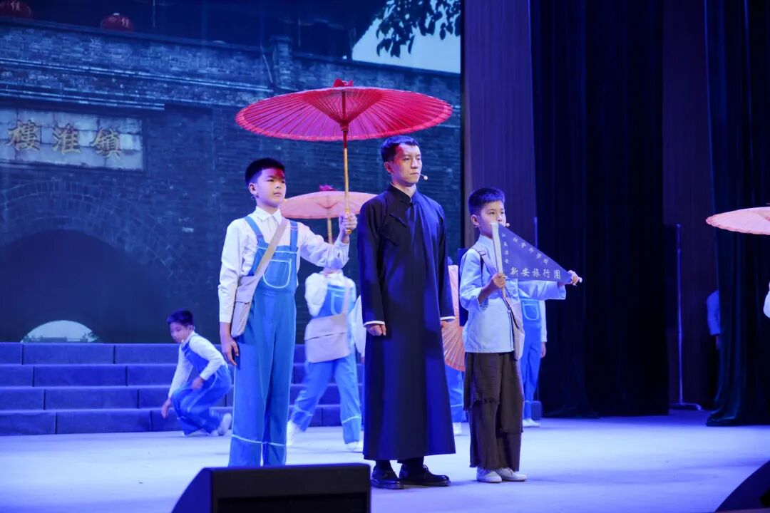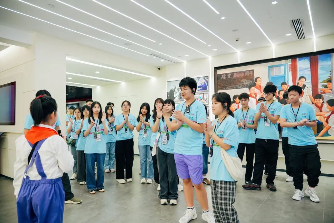 参访期间,港澳师生还一同观看了由新安小学学生表演的红色儿童剧《新安旅行团》。这部剧目采用创新的“戏中戏”表现方式,通过现代与历史的多空间交叉叙事,再现了战火年代中新安旅行团少年们可歌可泣的成长历程。港澳同学们被剧中小演员们真挚的表演所打动,深刻感受到了跨越时空的爱国情怀。