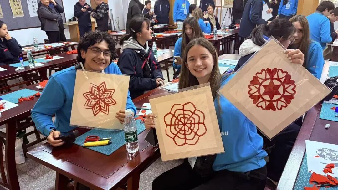 在盐城参访期间,美国师生走进盐城工学院和江苏省盐城中学,在多元互动中开启“跨越东西方的文化对话”。文化课堂上,美国师生体验传统武术太极拳、漆画扇制作、非遗剪纸、包水饺等特色活动,品味中华传统文化的雅致与意蕴;产教融合成果展中,美国师生观摩赛车展示,与车队队员就赛车设计、制造工艺和训练比赛情况展开互动交流。此外,团组师生还欣赏了美国民歌大合唱,在歌声中传递纯真友谊。